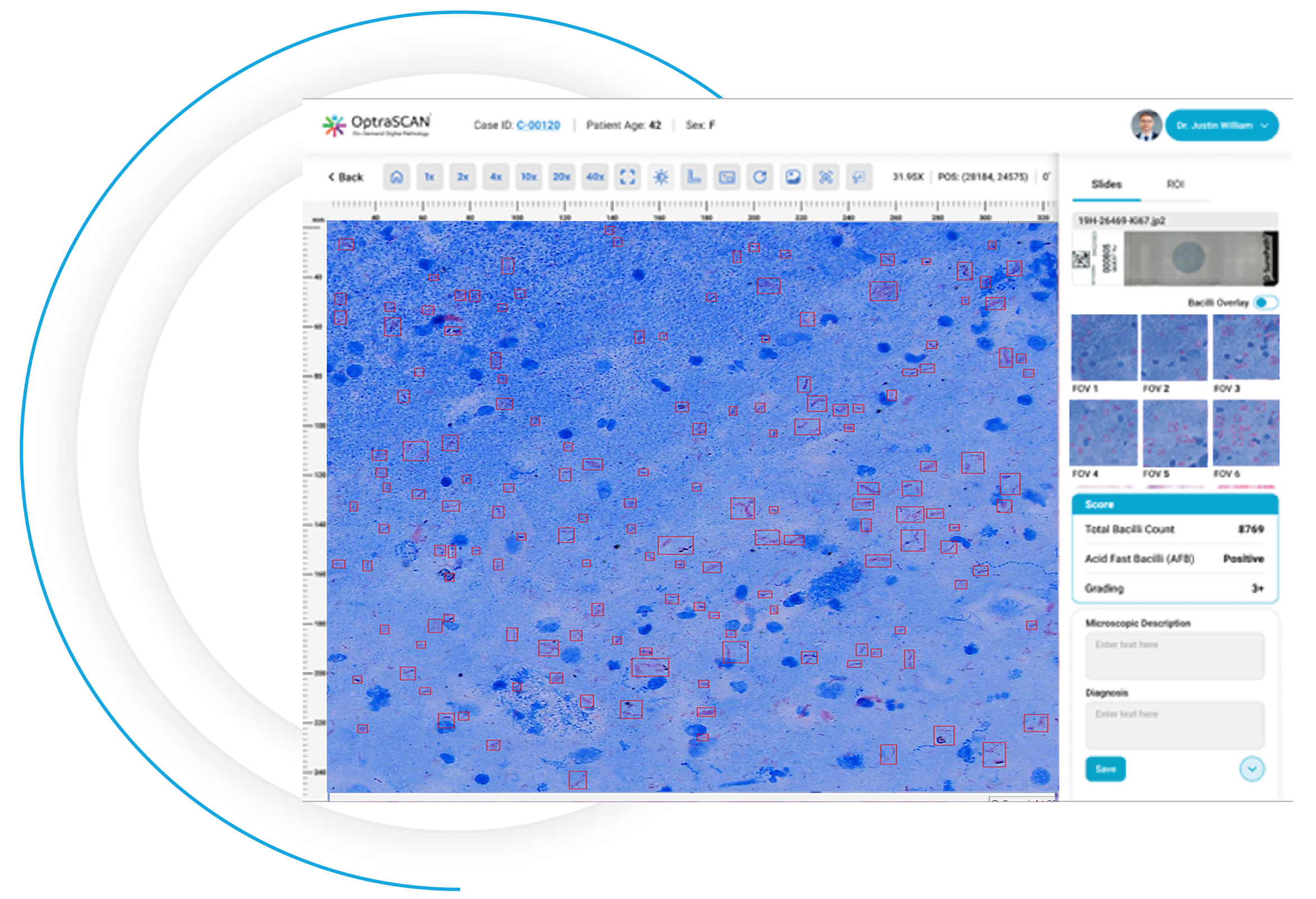 BactoSiA by OptraSCAN® combines high-resolution brightfield whole-slide scanning with trained AI algorithms to automatically detect and quantify acid-fast bacilli (AFB) on Ziehl–Neelsen-stained sputum samples. This end-to-end solution is designed to make TB detection more efficient, accessible, and actionable, even in low-resource settings with limited on-site expertise. BactoSiA is powered by OptraSCAN's OS-SiA™ technology - the world's first patented technology that scans, indexes, and analyzes simultaneously.